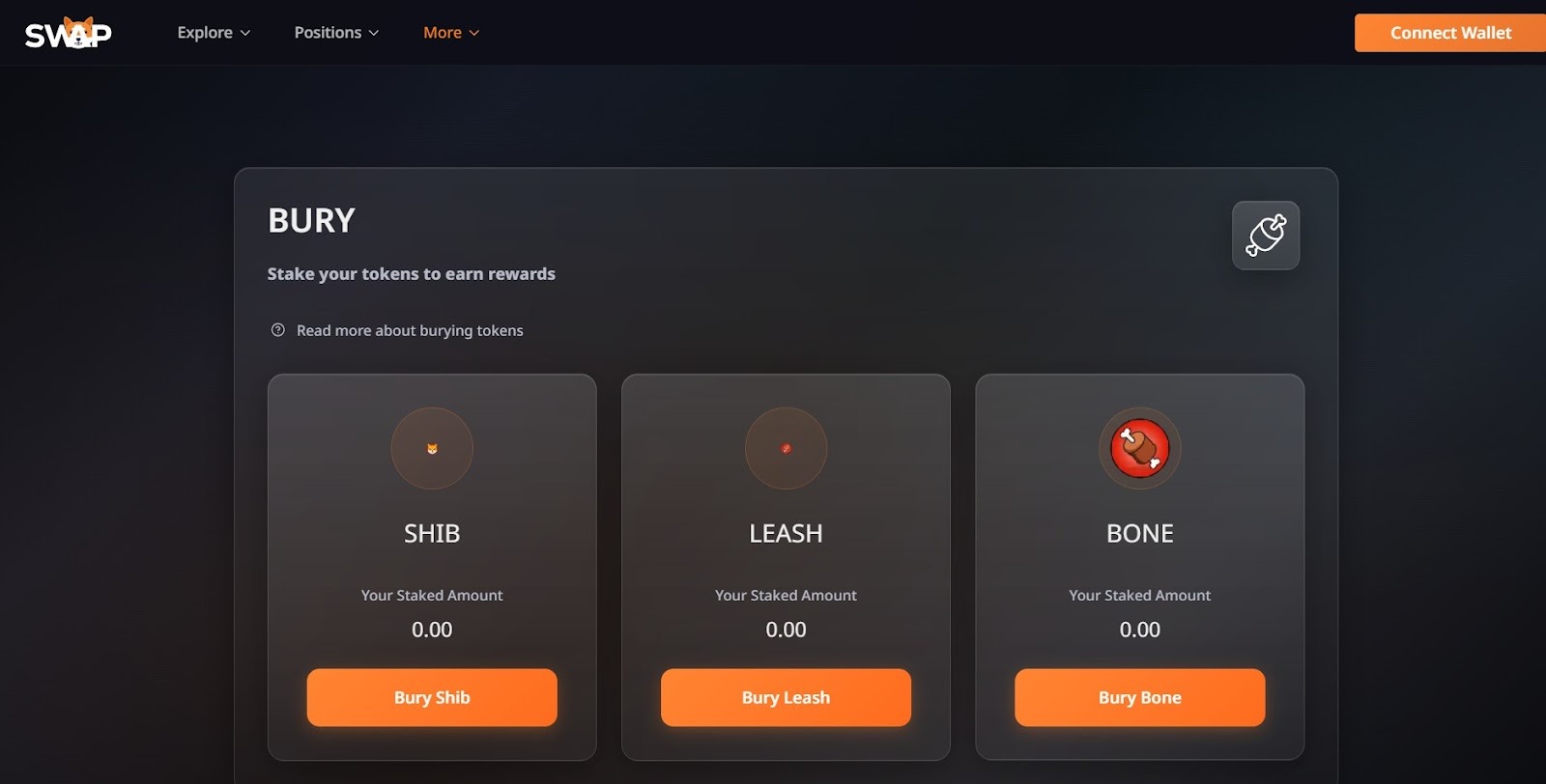 • Bury: Stake SHIB, LEASH, or BONE to earn BONE rewards and participate in governance.