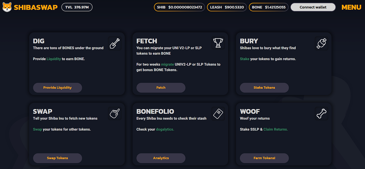 ShibaSwap is the decentralized exchange (DEX) for the Shiba Inu ecosystem, allowing users to swap tokens, provide liquidity (Dig), and stake assets (Bury) to earn rewards like BONE. Burying SHIB,ShibaSwap is the decentralized exchange (DEX) for the Shiba Inu ecosystem, allowing users to swap tokens, provide liquidity (Dig), and stake assets (Bury) to earn rewards like BONE. Burying SHIB,